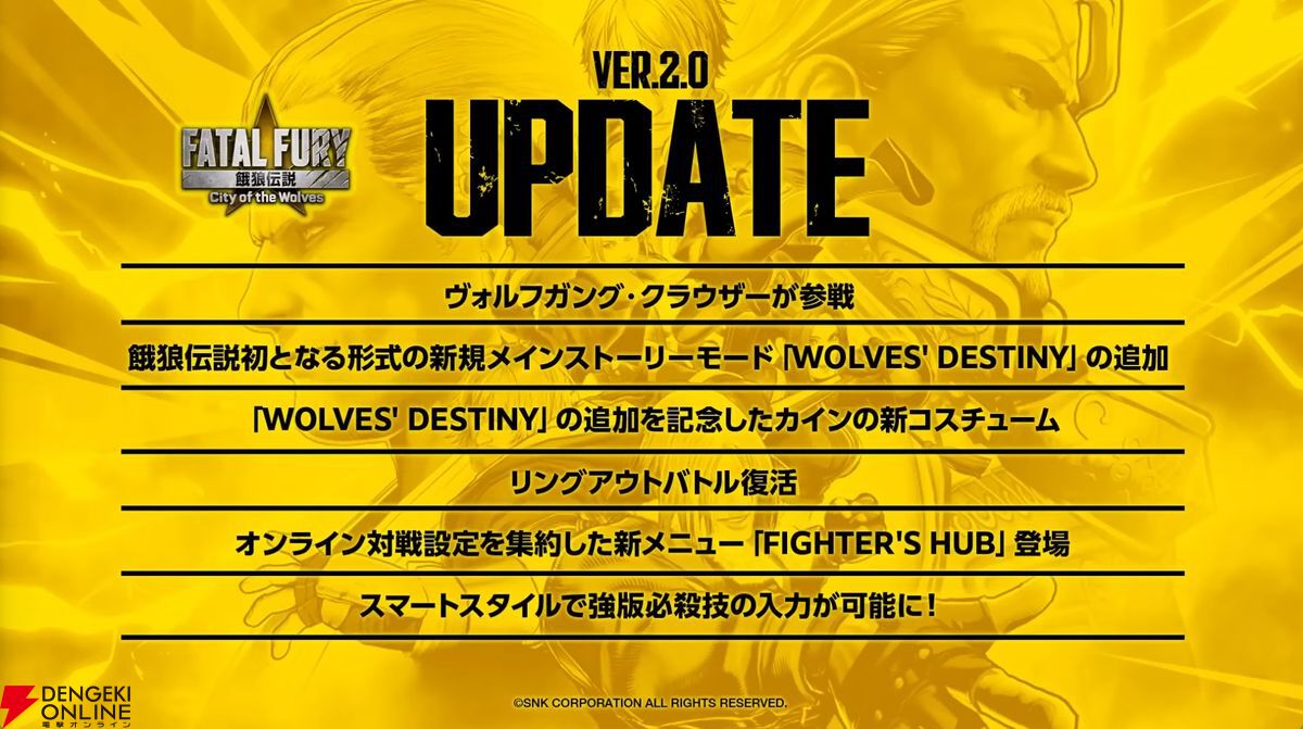 SNKの対戦格闘ゲーム『餓狼伝説 City of the Wolves』発売1周年となる4月24日にメジャーアップデートが実施されます。
