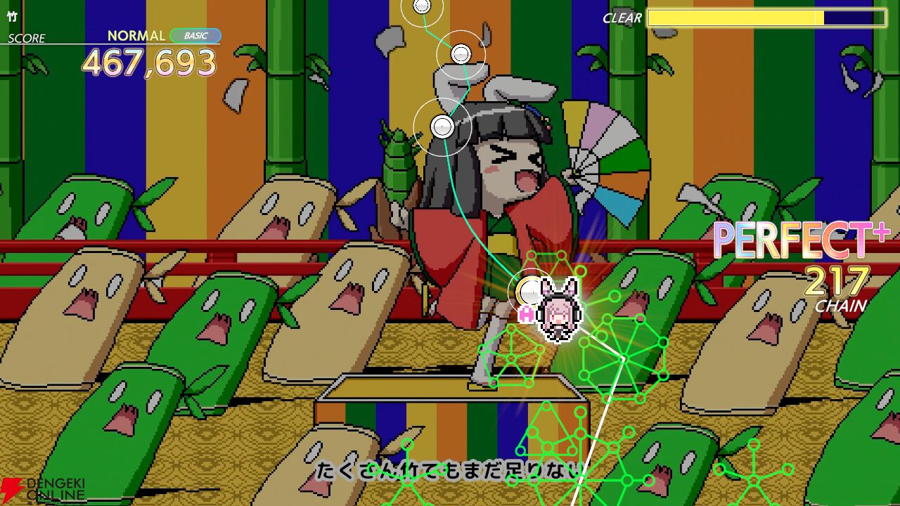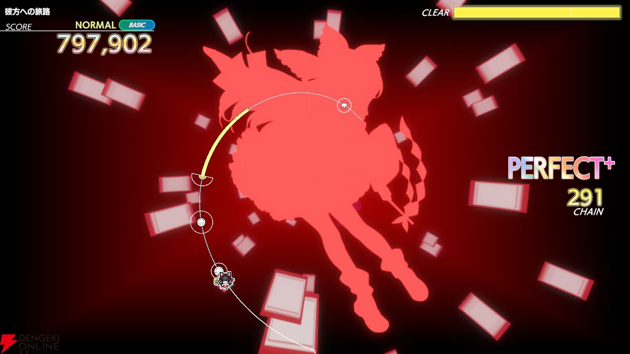 ※『彼方への旅路』、『響縁』、『イージーモード』、『LINK LINK FEVER!!!』はアップデートするとすぐに“演奏”モードにてお楽しみいただけ、『Rainbow Coaster』、『ルドベキア』はストーリーで解禁することで演奏できるようになります。さらに各曲は“ストーリー”モードの一部のステージに課題曲として追加されます。