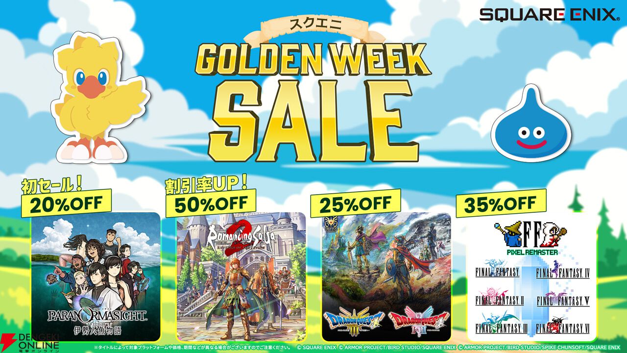 スクウェア・エニックスは、“スクエニGOLDEN WEEK SALE”を開始しました。