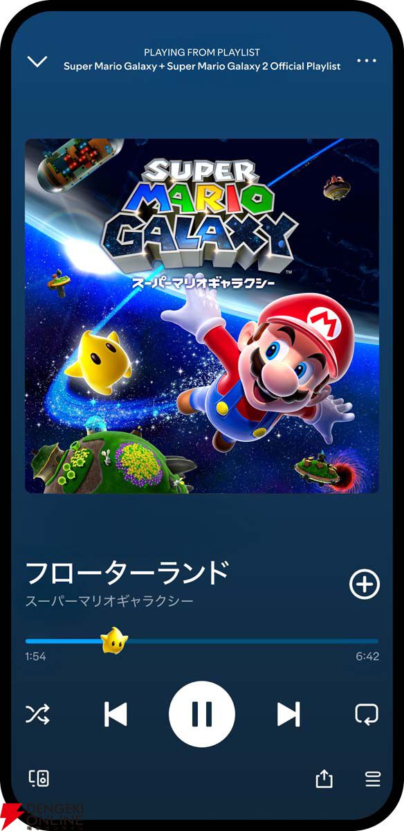 『スーパーマリオ ギャラクシー』と『スーパーマリオ ギャラクシー 2』のゲーム楽曲を収録。名作ゲームの公式音源を通じて、冒険やキャラクター、ステージの記憶がよみがえり、ゲームの世界をSpotify上で体感できるプレイリストです。