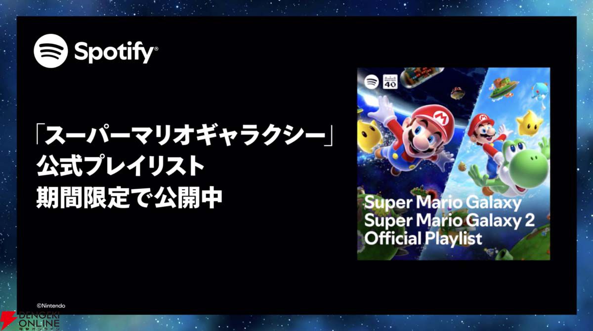Spotifyにて、『ザ・スーパーマリオギャラクシー・ムービー』公開や『スーパーマリオブラザーズ』40周年記念の連動企画が展開されています。