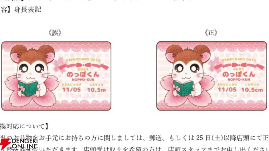 4月23日(木)より「とっとこハムタウンショップ」店頭にて販売しております「プロフィールカード(ランダム) さくら ver.」の一部種類にデザインの誤りがございました。… pic.twitter.com/xKS0Cw1Qiy