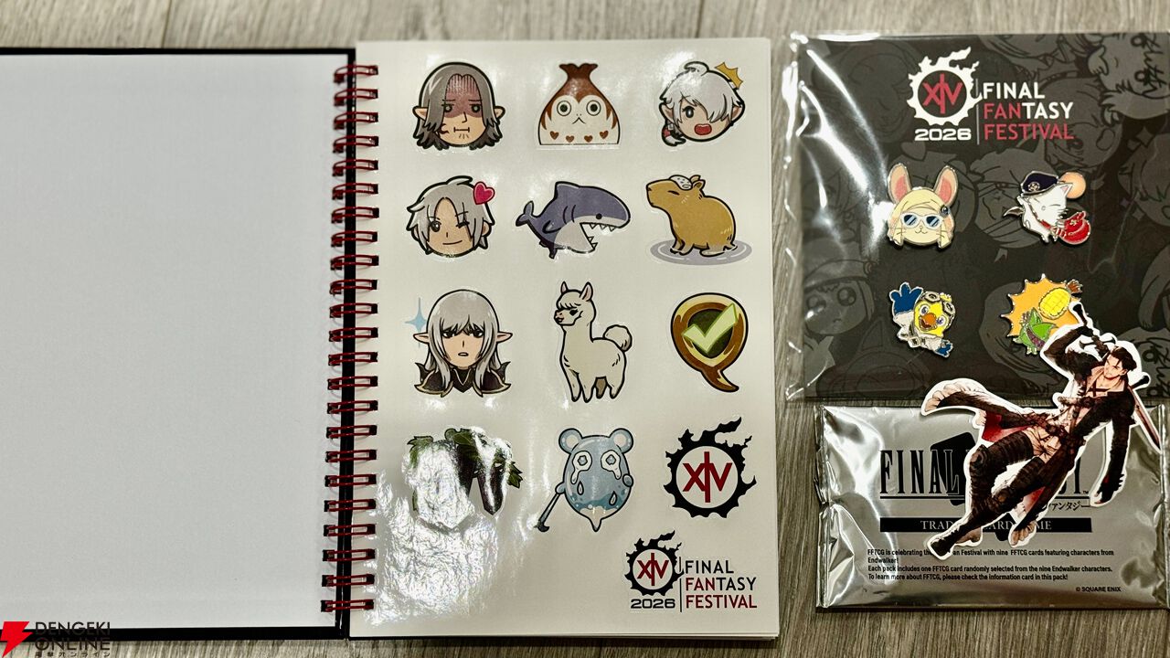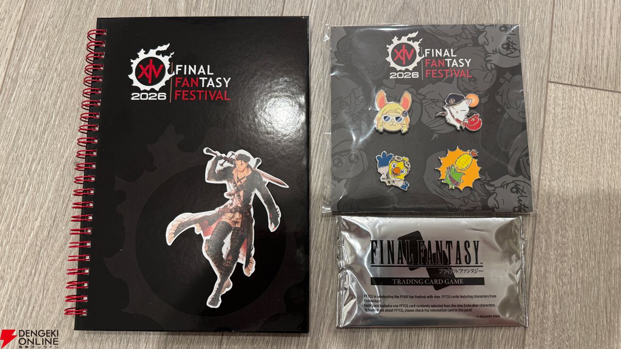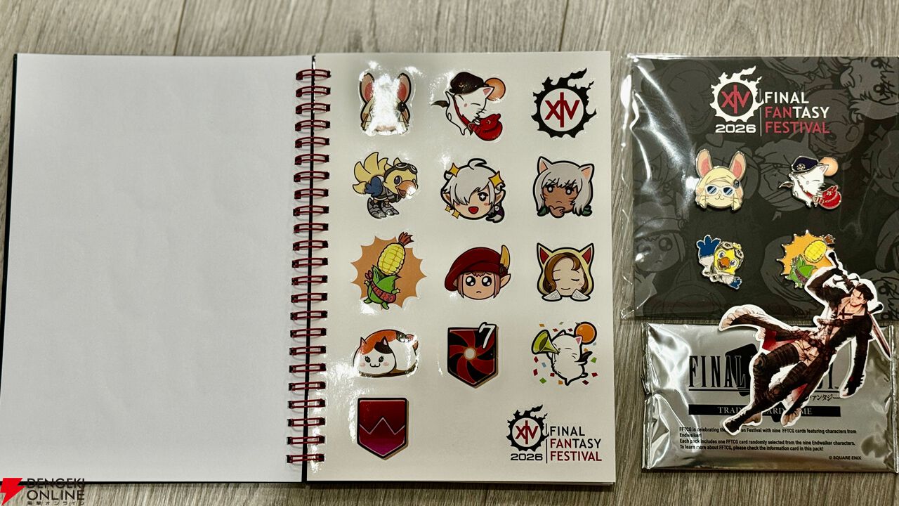 そしてファンフェス恒例となっている、参加者に贈呈されるグッズは、ミニメッセンジャーバッグと帽子、ピンバッジ、ステッカーブック、光の戦士ステッカー、そしてファイナルファンタジー・トレーディングカードゲームのプロモカードという、なかなか豪華な組み合わせだ。