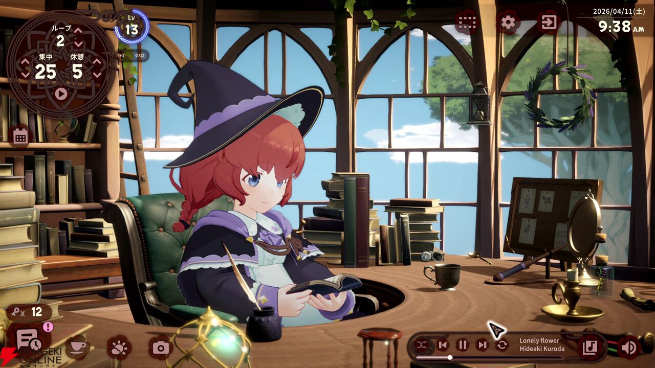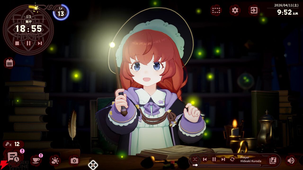 本作のために書き下ろされたオリジナルのケルト音楽と環境音が彩る、静かな異世界の部屋。あなたが机に向かえば、メモリィも隣で魔法の勉強に取り組みます。集中を妨げることなく穏やかで没入感のある空間の中で、ひとりきりの作業時間が、誰かと一緒に頑張る、あたたかな時間へと変わっていきます。