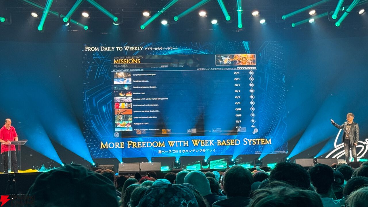 とくにアドベンチャラーアクティビティーという新UI、および“デイリーからウィークリーへの移行”には、これまでの『FF14』生活が激変するということで多くの人がざわついていた。
