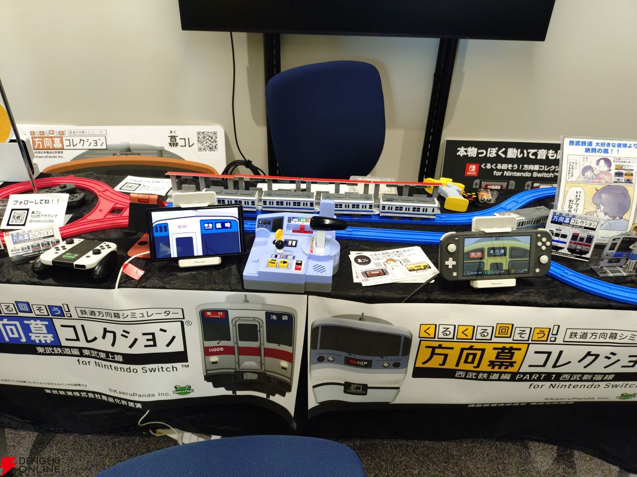 ブースには、記念撮影にぴったりな電車の顔だしパネルもあり、行先表示器はもちろんくるくる回っていました。