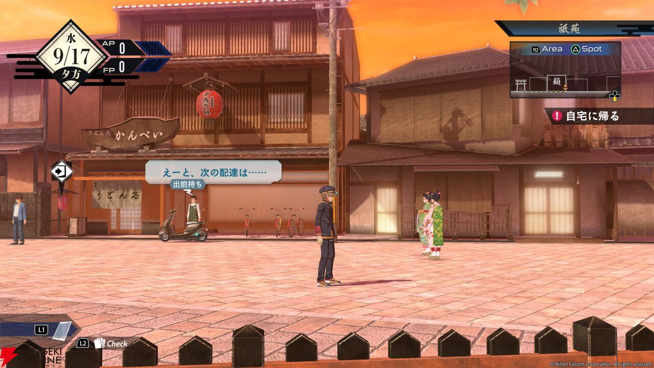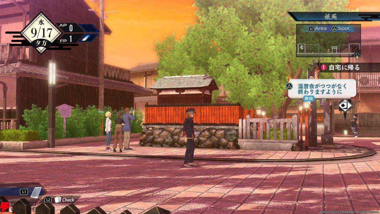 “亰都観光コース”は、本作の舞台である亰都市街の各エリアを見て回るコース。主人公の神矢 伶(カミヤ レイ)を操作し、“祇苑”や“亰極商店街”といった、リアルの京都をモチーフにした地域に行くことができました。