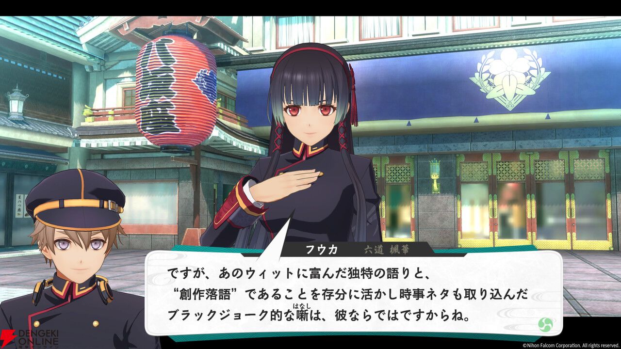 “譚歌抄”はキャラクターごとの個別シナリオのようなもので、サイフォン(本作におけるスマートフォン)のメニューの“交流録”から閲覧可能。仲間の1人である六道 楓華(リクドウ フウカ)なら落語を観るのが趣味など、相手についてより深く知ることができます。