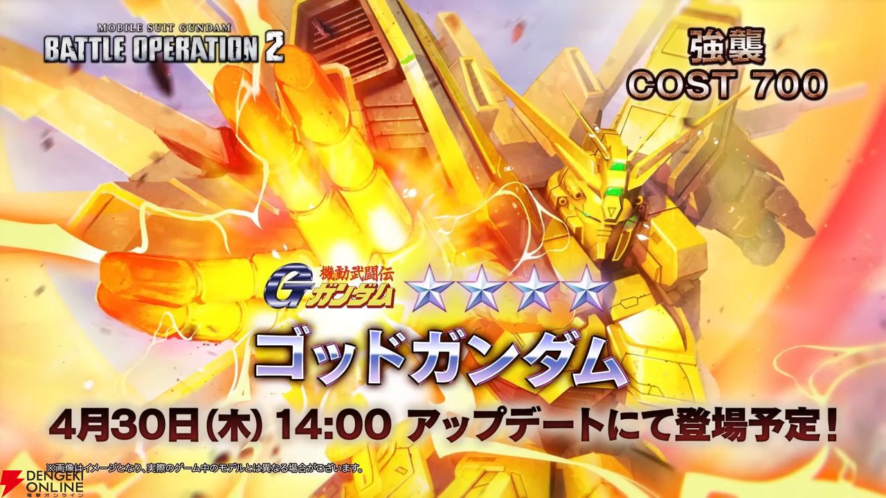 ゴッドガンダムガンダムは、コスト700の強襲機で、4月30日に実装されます。