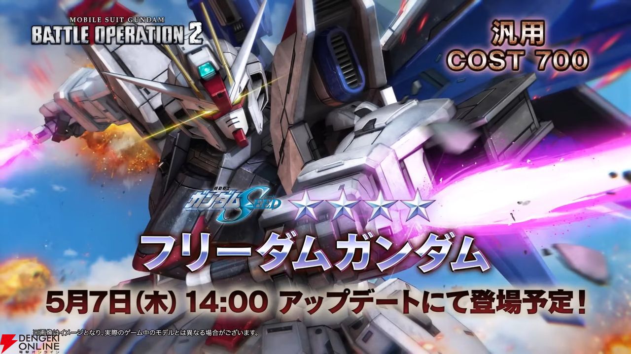 フリーダムガンダムは、コスト700の汎用機で、5月7日に実装されます。