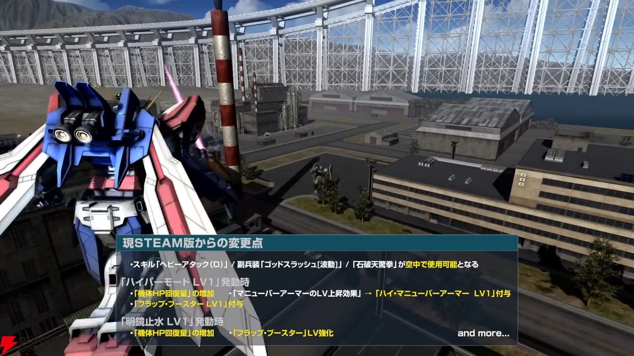 Steam版に先行実装されていた“ゴッドガンダム”と“フリーダムガンダム”が参戦します。ゴッドガンダムにフラップブースターが追加されるなど、現在Steam版に登場している両機は、今回の実装にあたって調整が施され、その調整後の性能と同様のものがPS版にも実装されるとのことです。