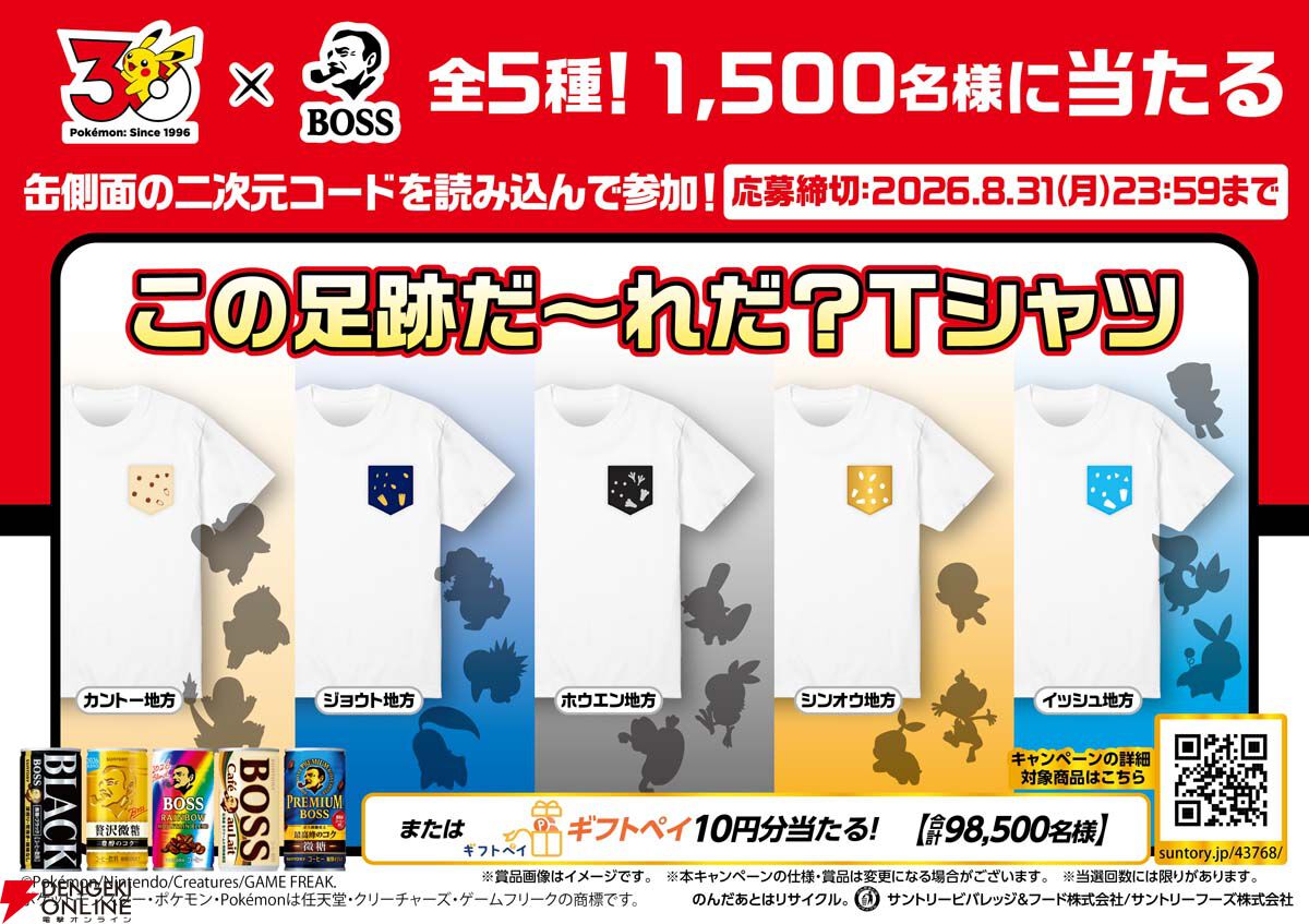 キャンペーンの詳細は“BOSS×ポケモン30周年”キャンペーンサイト※とBOSS公式Xアカウント(@_craftboss)に今後掲載していきます。
