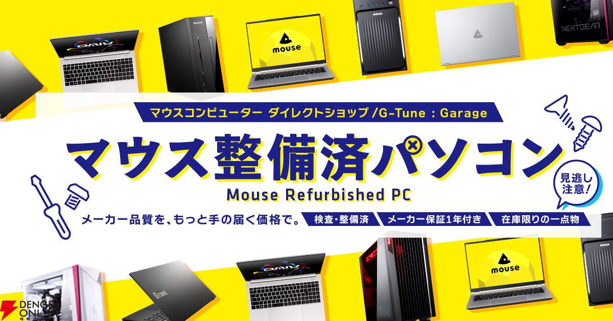 マウスコンピューターは、当社修理工場で検査・整備を実施し、品質を確認したリユースパソコン「マウス整備済パソコン」の販売を、マウスコンピューターの直営店舗にて、4月29日(水)各店舗開店時間より、開始します。