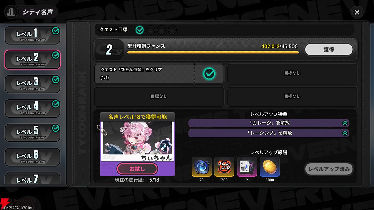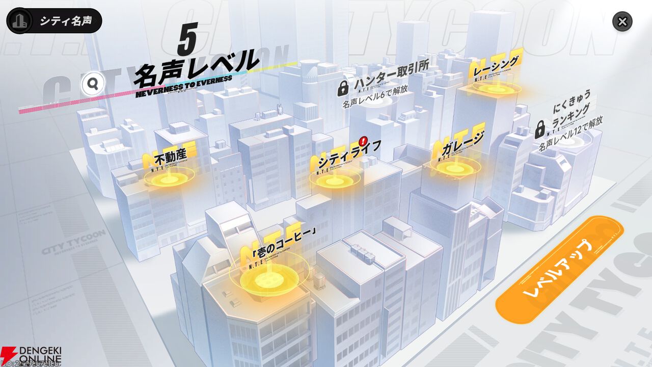 ”シティ名声”が解放されると、シティレベルを上げることができます。このレベルを上げることで、どんどん都市生活で楽しめるコンテンツが増えていきます。