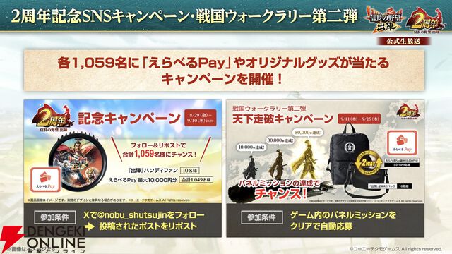 『信長の野望 出陣』2周年記念公式生放送まとめ。列伝イベント“川中島の戦い”、【越後の龍】上杉謙信&【甲斐の虎】武田信玄が8/28に配信決定。天下統一チャレンジや名湯図鑑など、新要素も盛りだくさん