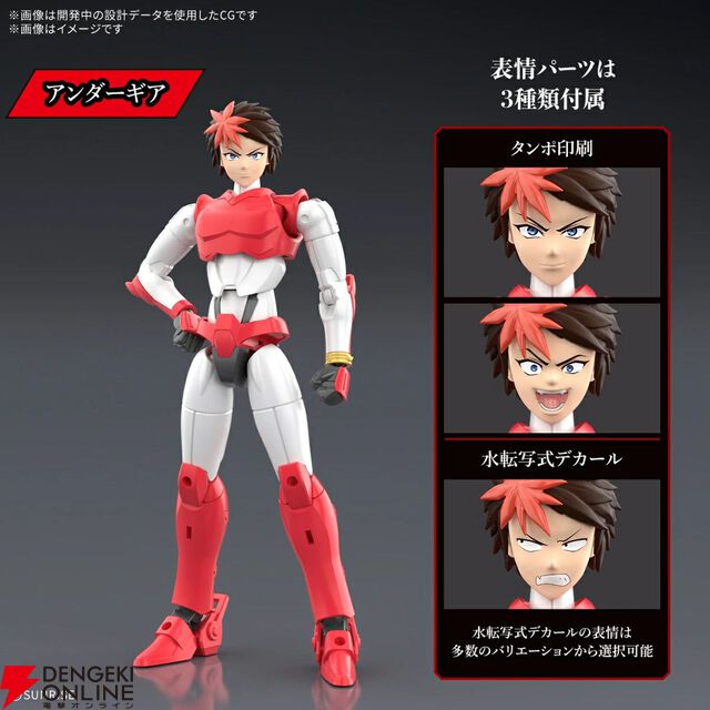 新アニメ『鎧真伝サムライトルーパー』より《灼熱のガイ》が30MFでプラモデル化。パーツ差し替えでアンダーギア⇔ヨロイギアの変身を再現!