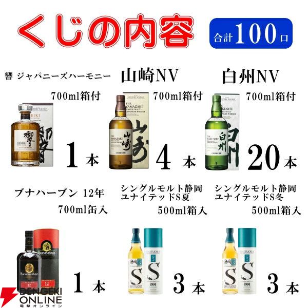 当たりは60%以上。さらにラストワン賞はアードベッグ スペクタキュラー確定! 山崎NV、白州NV、響JHも当たる6,765円の『ウイスキーくじ』が販売中