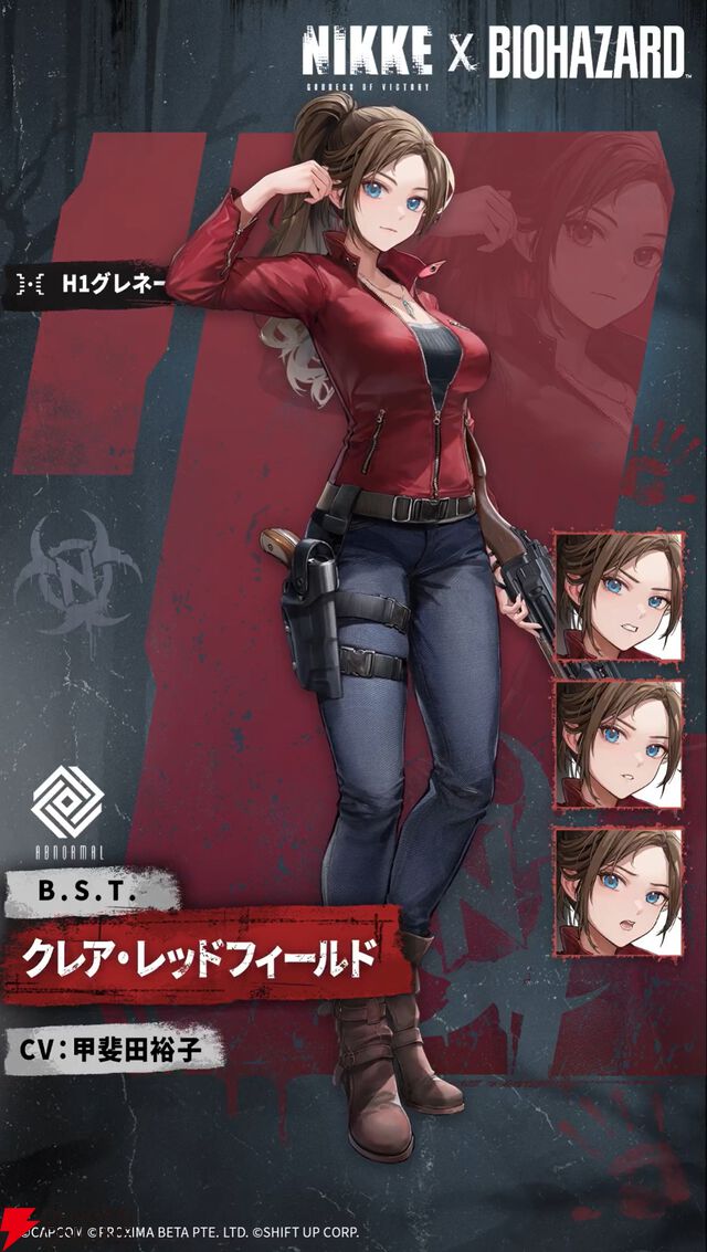 バイオコラボSRのクレア・レッドフィールド(声優:甲斐田裕子)は、最悪のパンデミック・ラクーン事件から生還した女子大学生【勝利の女神:NIKKE(メガニケ)×バイオハザード】
