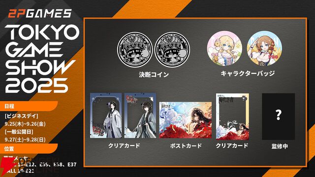 『スルタンのゲーム』『泣き叫ぶ雁』『夜明けの笛吹き者』など5タイトルが出展。試遊で決断コインやクリアカードなど特製グッズがもらえる!【TGS2025:2P Gamesブース】