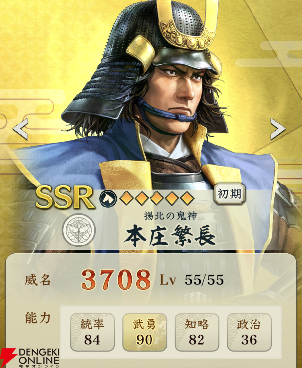 『信長の野望 出陣』攻略:新SSR武将【揚北の鬼神】本庄繁長の性能解説。超攻撃型サポーターであり回復戦法持ちの上杉家騎馬武将【日記#240】