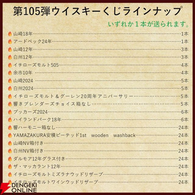 14,880円でアードベッグ24年、山崎18年、余市10年、イチローズモルト505などが当たる『ウイスキーくじ』が販売中