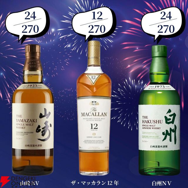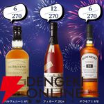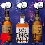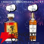 創業記念の豪華版。22,000円で響30年、マッカラン25年、山崎・白州18年、響21年などが当たる2本セットの『ウイスキーくじ』が販売中