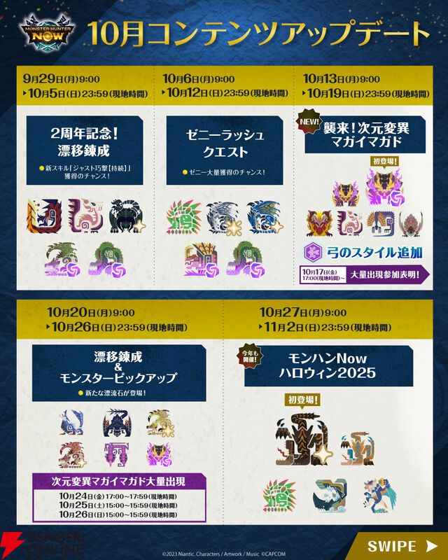 『モンハンナウ』10月のコンテンツアップデートのお知らせ。次元変異マガイマガド、ティガレックス亜種、弓のスタイル強化を追加【モンスターハンターNow】