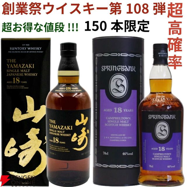 14,880円でスプリングバンク18年、山崎18年などを狙え、末等でも1万円以上の銘柄が届く創業記念の豪華『ウイスキーくじ』が販売中