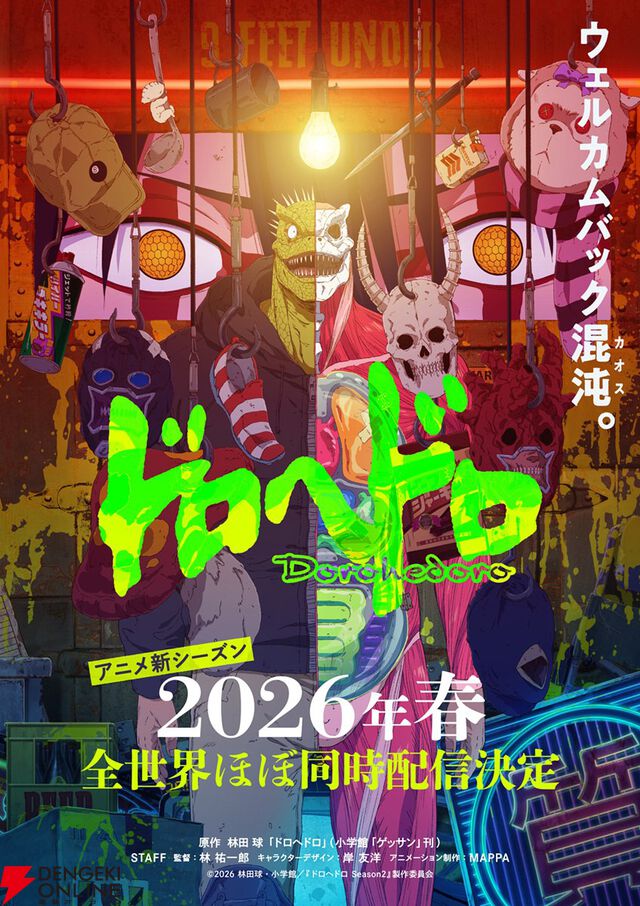 アニメ『ドロヘドロ』続編の配信時期が2026年春に決定。ショッキングな要素もありながらも気の抜けたカイマンの表情に注目のキービジュアルも解禁