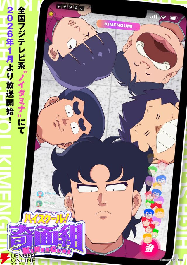 アニメ『ハイスクール!奇面組』2026年1月放送決定。奇面組の声優は関智一、武内駿輔、松岡禎丞、小林千晃、戸谷菊之介
