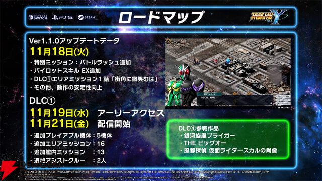 『スーパーロボット大戦Y』DLC1弾の配信日が11月21日に決定。『銀河旋風ブライガー』、『THE ビッグオー』、『風都探偵 仮面ライダースカルの肖像』が参戦