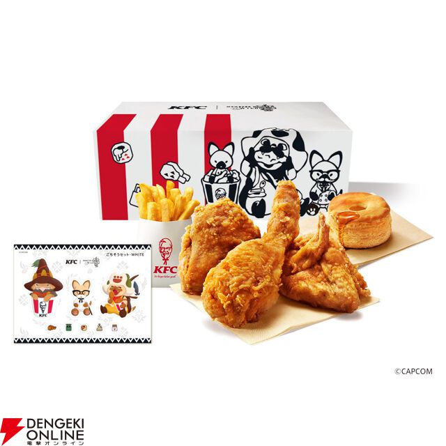 『モンハンワイルズ』とケンタッキーフライドチキンがコラボ。ゲーム内で使用できるチャームやオリジナルデザインのシールなどがもらえるコラボパックが販売