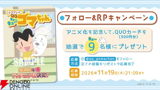 『小3アシベ QQゴマちゃん』2026年春にアニメ化。アシベやスガオ君たちは小3に。もちろんゴマちゃんも大活躍!