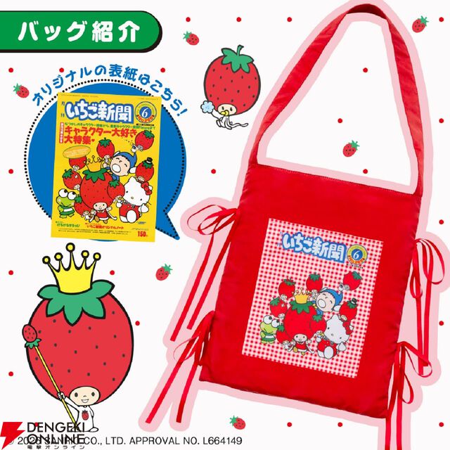 サンリオ月刊紙『いちご新聞』創刊50周年記念トートバッグが付きムックが登場。いちご新聞がすっぽり入る内ポケット付き!