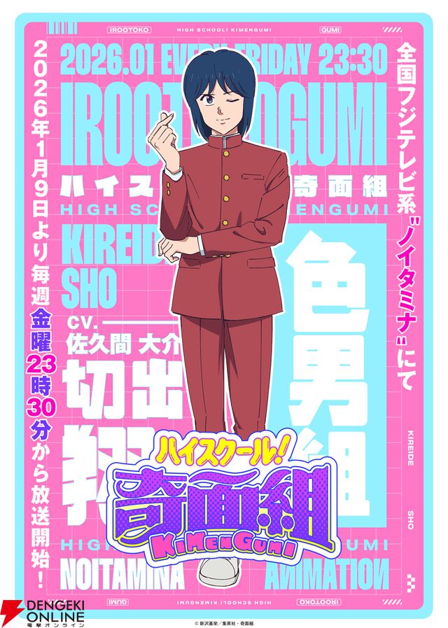 アニメ『ハイスクール!奇面組』色男組リーダー・切出翔の声優に佐久間大介(Snow Man)。放送開始は1月9日に決定