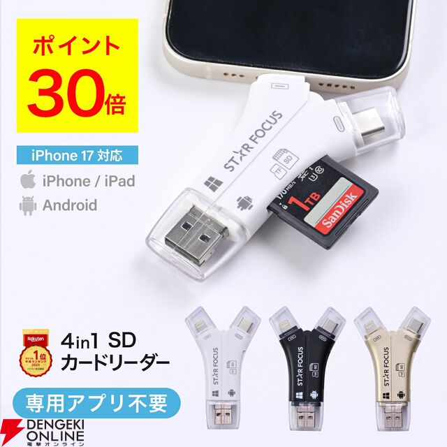 Y字型で使いやすい『4in1 SDカードリーダー』がポイント30倍でお買い得。スマホの容量不足、ストレージ対策に欠かせない便利ツール