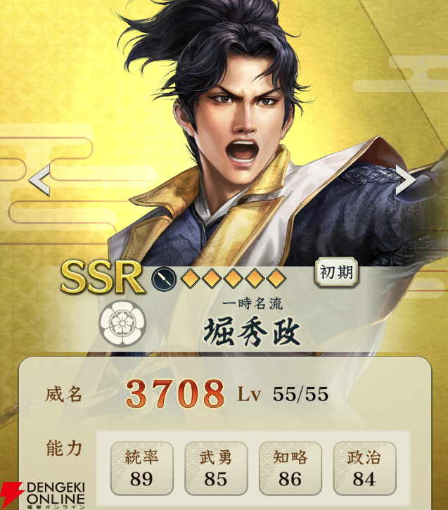 『信長の野望 出陣』攻略:新SSR武将【一時名流】堀秀政の性能解説。織田家サポーターの戦法効果を増加させる初期特性が強力【日記#252】