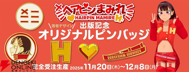 VTuber・ヘアピンまみれ初書籍刊行記念グッズのオリジナルピンバッジは完全受注生産で本日12月8日23:59まで予約受付。サイン刻印&シリアルナンバー入りプレート付きセットも