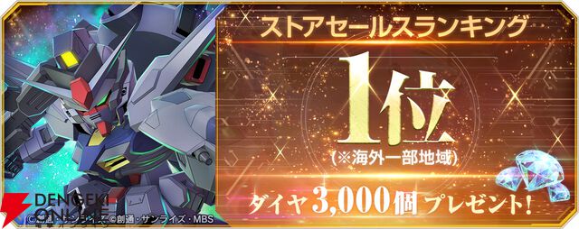 『Gジェネ エターナル』海外一部地域でストアセールスランキング1位達成記念でダイヤ3,000個(ガシャ10回分)配布【SDガンダム ジージェネレーション エターナル】