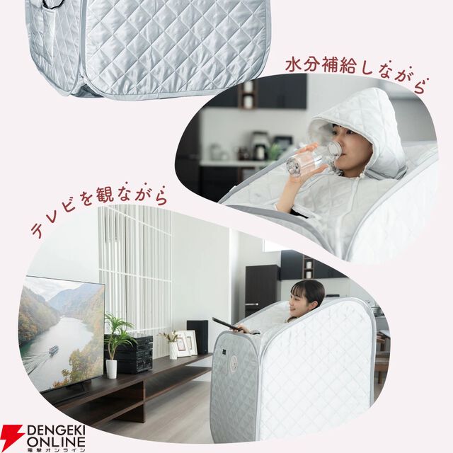 《楽天スーパーセール》で自宅で楽しめる1人用サウナ『エイミー ホームサウナ』が1時間限定で半額29,900円に。最高70°C、しっかり温める多機能設計!