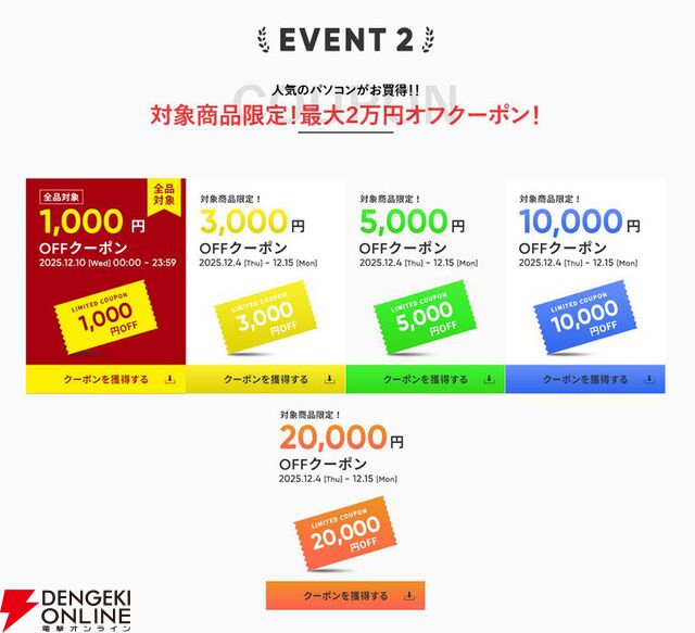 最大2万円オフクーポン用意。ゲーミングPCなどがお得なマウスコンピューター期間限定“LIMITED SALE”開催中。明日12/10限定タイムセールで全品1000円オフ《楽天スーパーセール》