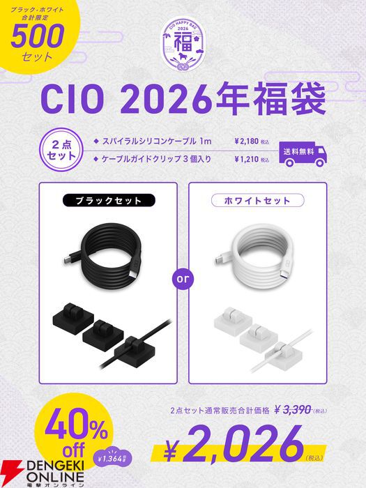 【最大47%OFF】CIO人気ガジェットが選べる福袋2026。モバイルバッテリーやスパイラルケーブル、ホットアイマスクなど