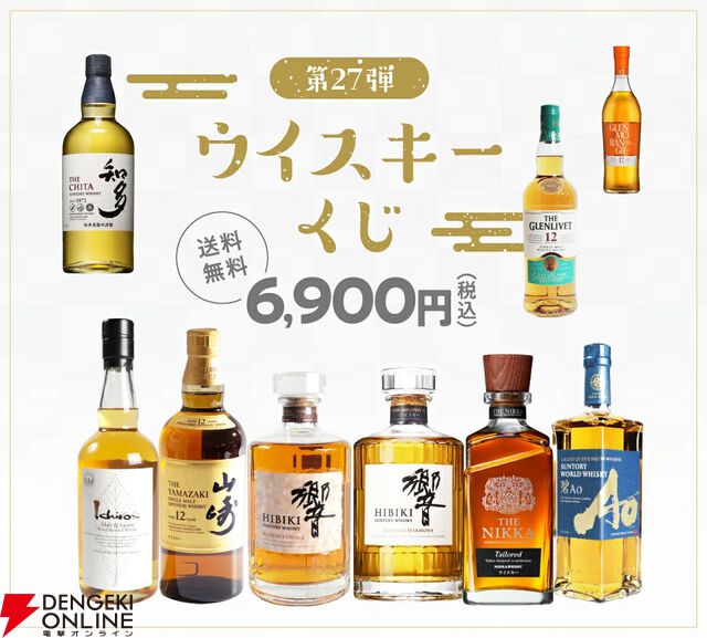 山崎12年、響BCが約1/33で狙える6,900円で送料無料の『ウイスキーくじ』が販売中