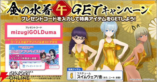 『アリスギア』正月キャンペーンでスカウト(ガチャ)55回無料。金の水着プレゼントや体操服割引なども実施【アリス・ギア・アイギス】