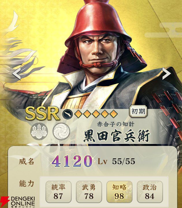 『信長の野望 出陣』攻略:新SSR武将【赤合子の知計】黒田官兵衛の性能解説。戦法連発で戦法ゲージを低下させる初期威名1000武将【日記#261】