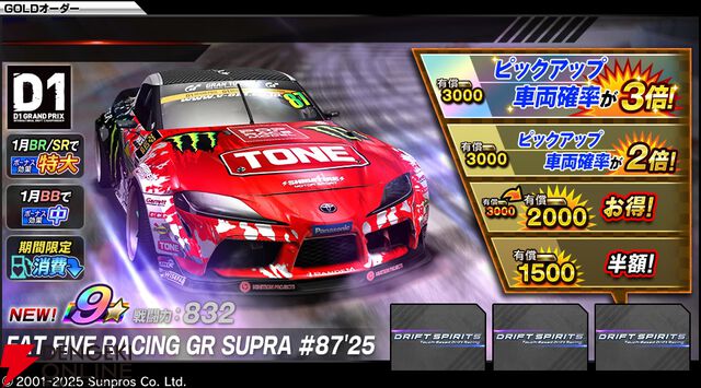 『ドリフトスピリッツ』D1グランプリシリーズとのコラボで齋藤太吾選手、中村直樹選手、日比野哲也選手の車両が新登場。横井昌志選手の車両が手に入るチャレンジパスも