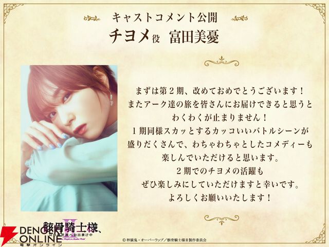 アニメ『骸骨騎士様Ⅱ』2026年7月より放送決定。キービジュアル&ティザーPV、前野智昭、ファイルーズあいら声優陣からのコメントが公開