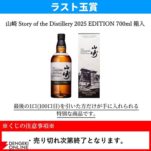 ラストワン賞は前回に続き山崎Story of the Distillery2025確定。14,300円で山崎・白州12年、山崎・白州Story of the Distillery2025、響BH2025を狙える『ウイスキーくじ』が販売中