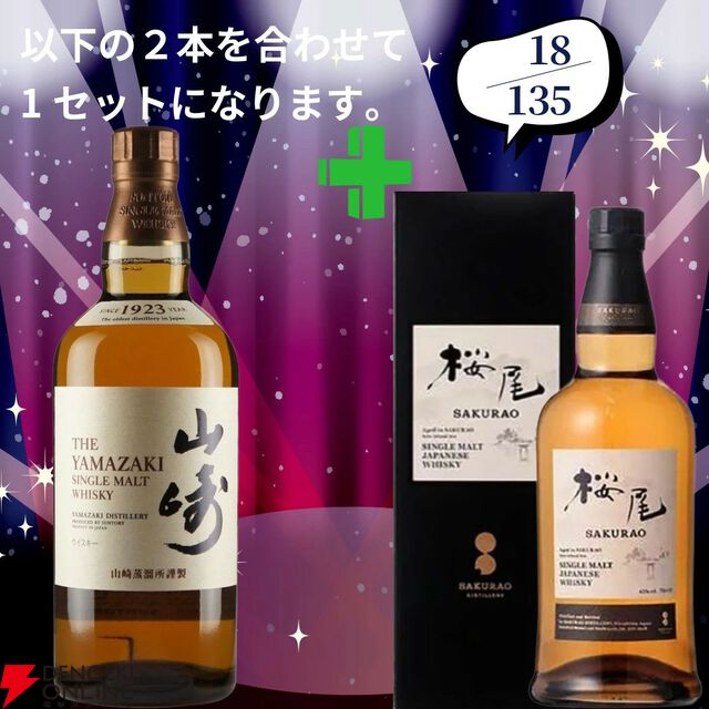 20,880円で山崎18年+余市10年、白州18年+スプリングバンク10年、厚岸 冬至+霜降のセットなどが当たる2本セットの『ウイスキーくじ』が販売中