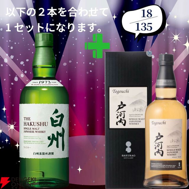 20,880円で山崎18年+余市10年、白州18年+スプリングバンク10年、厚岸 冬至+霜降のセットなどが当たる2本セットの『ウイスキーくじ』が販売中